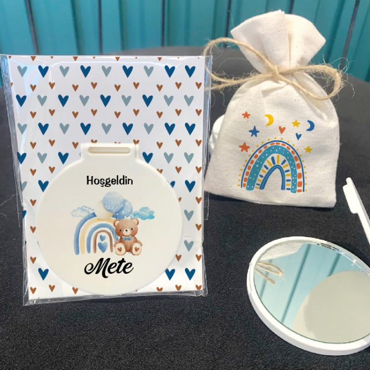 Sevimli Ayıcık Baskılı Bebek Hediyelik Cep Aynası