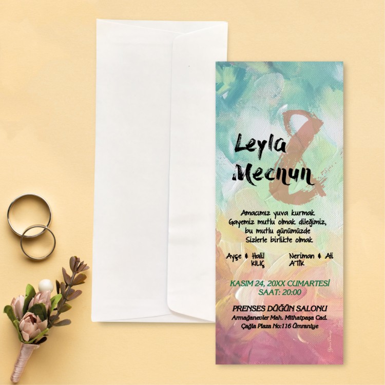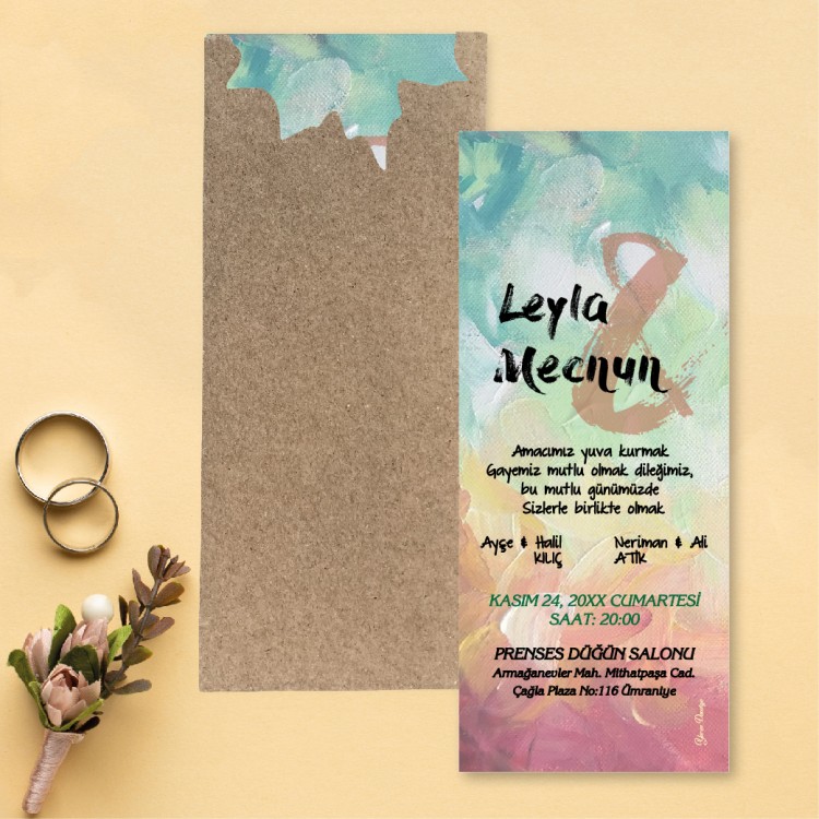 - Davetiye ölçüsü: 8 x 19 cm