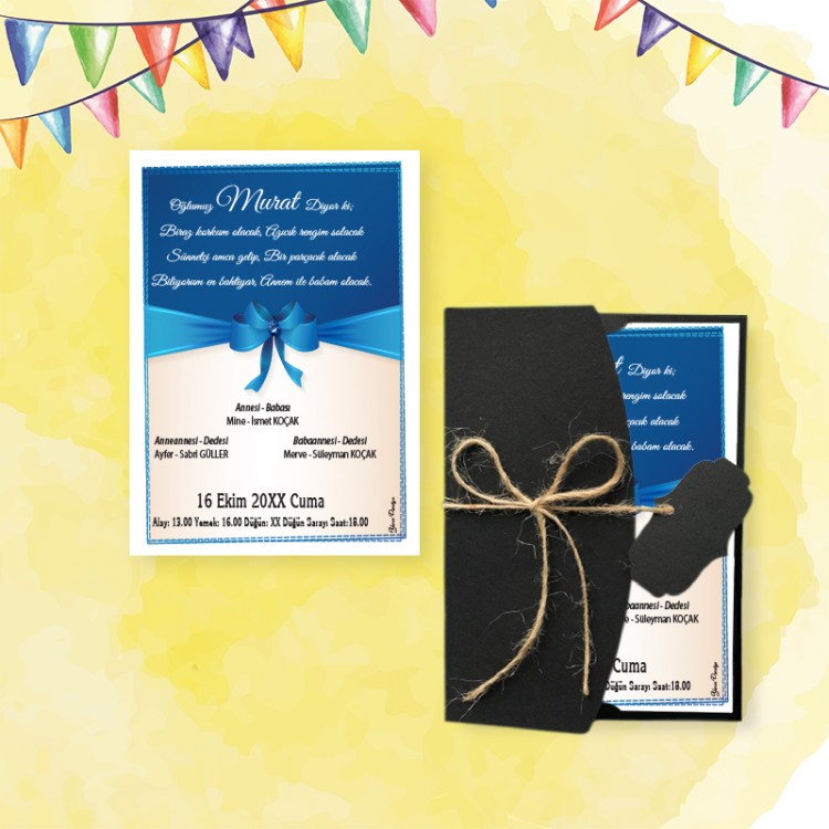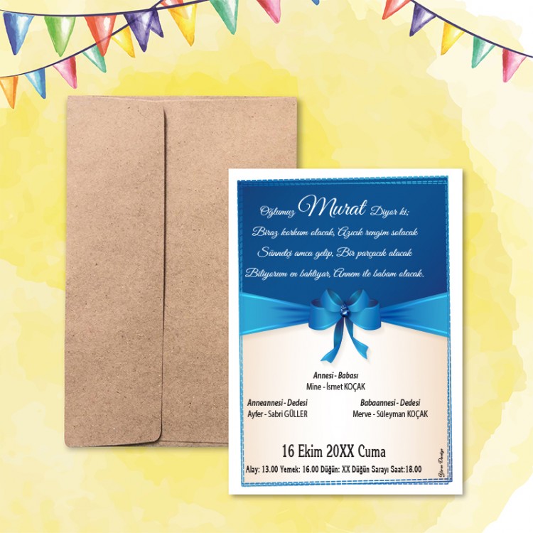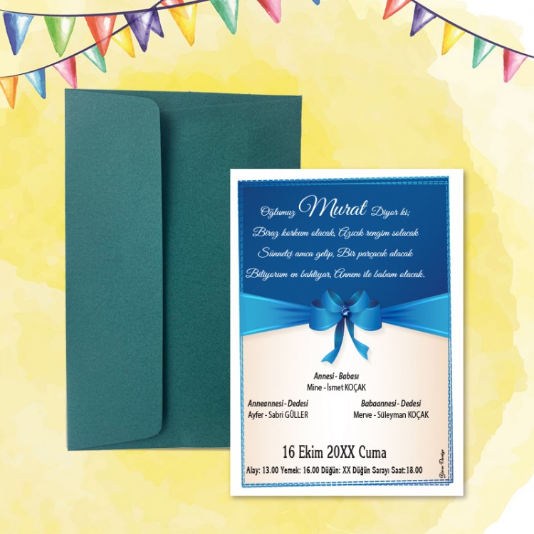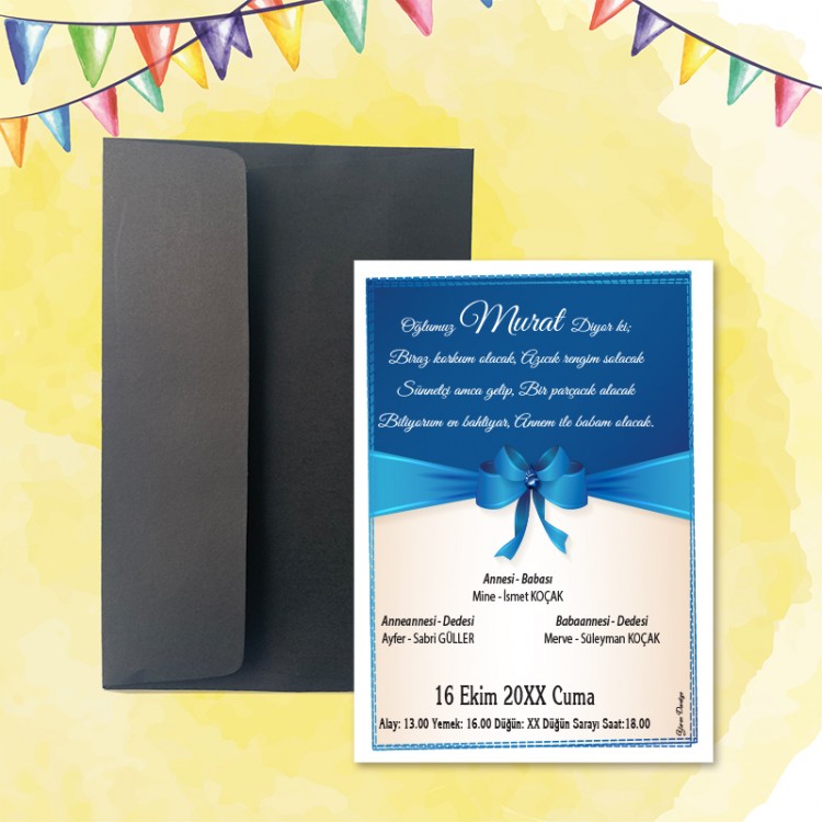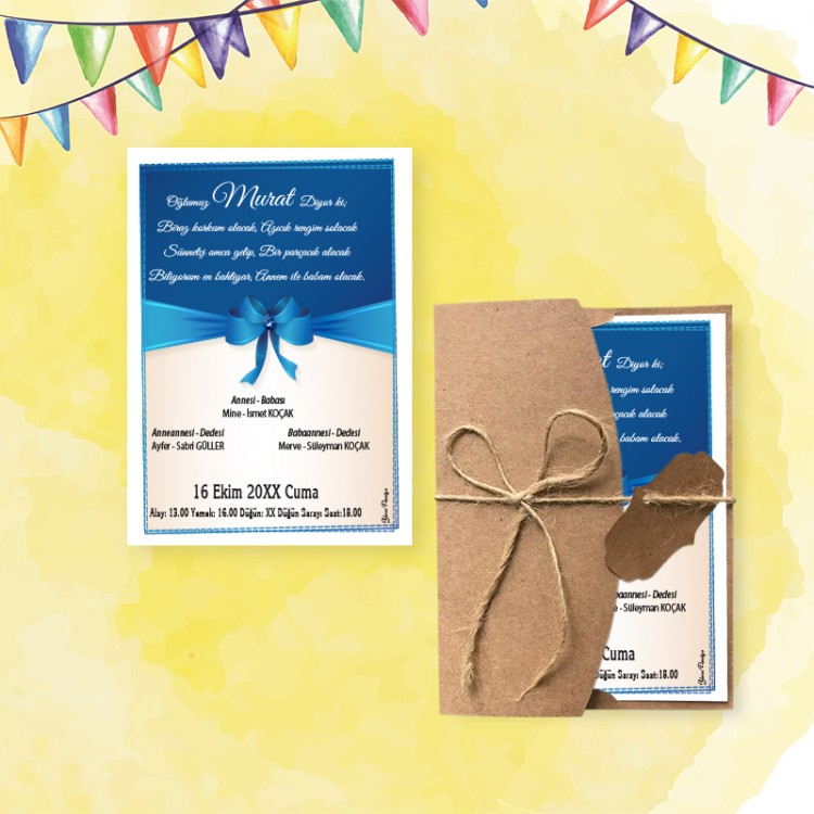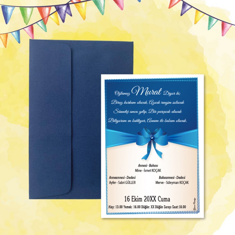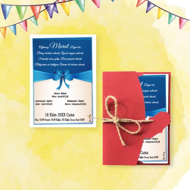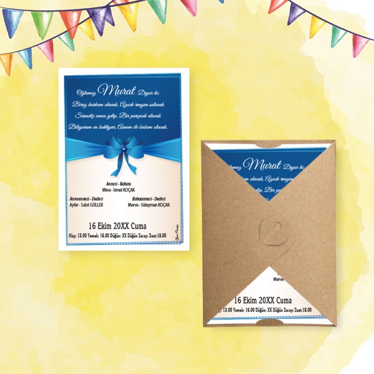 Mert Sünnet Davetiye 0311 - Fiyonk Tasarımlı Sünnet Davetiyesi Modelleri