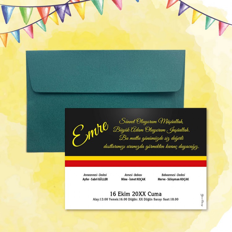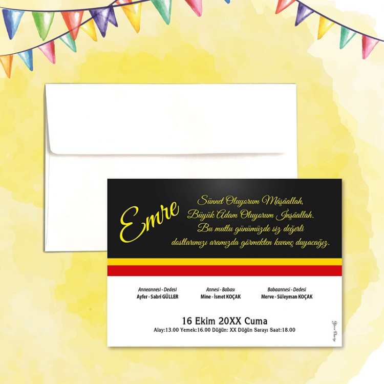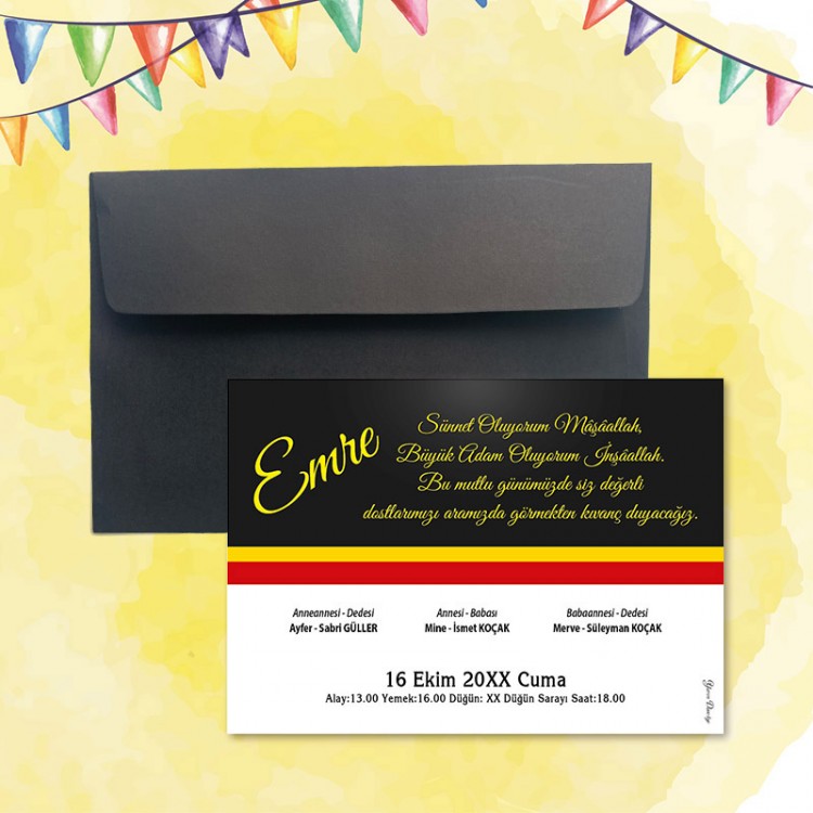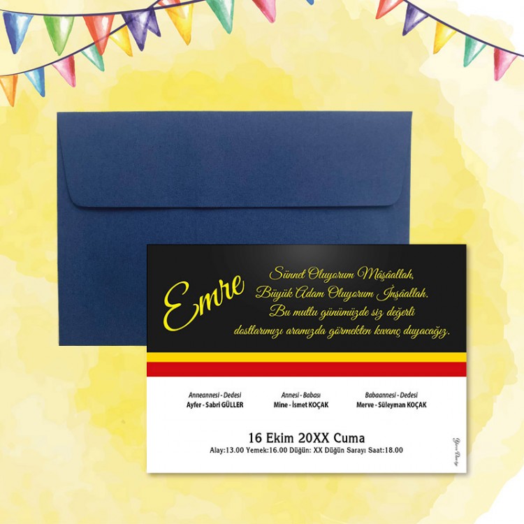 - Davetiye ölçüsü: 11,3 x 15,8 cm