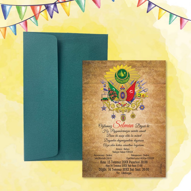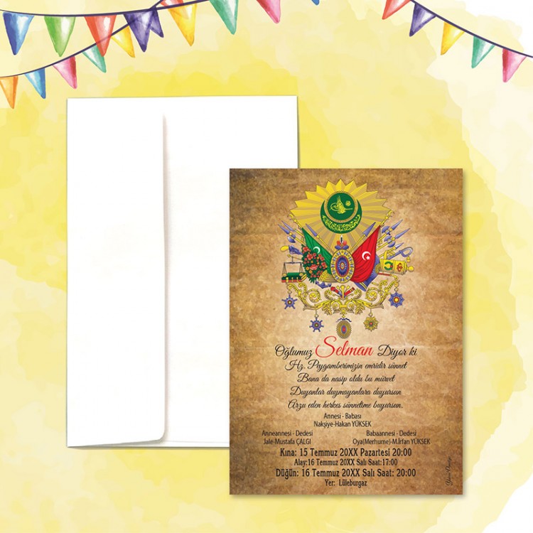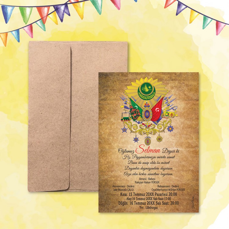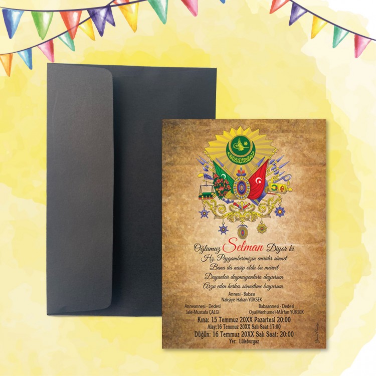 - Davetiye ölçüsü: 11,3 x 15,8 cm