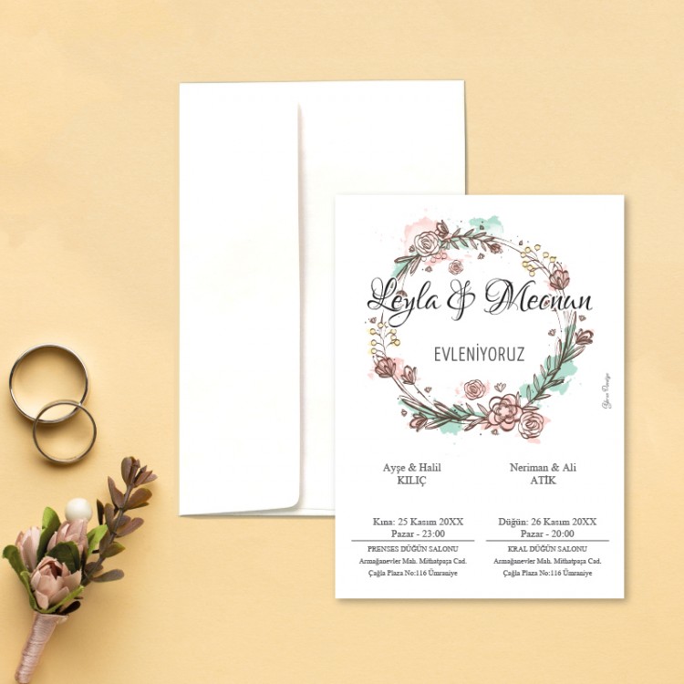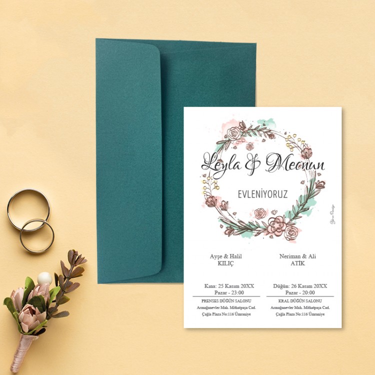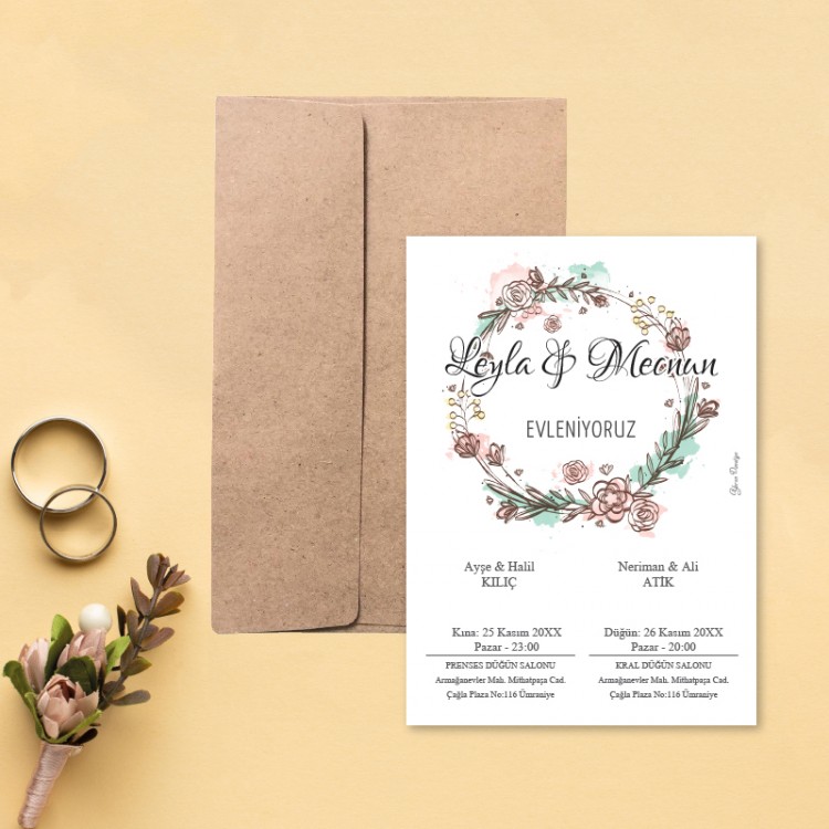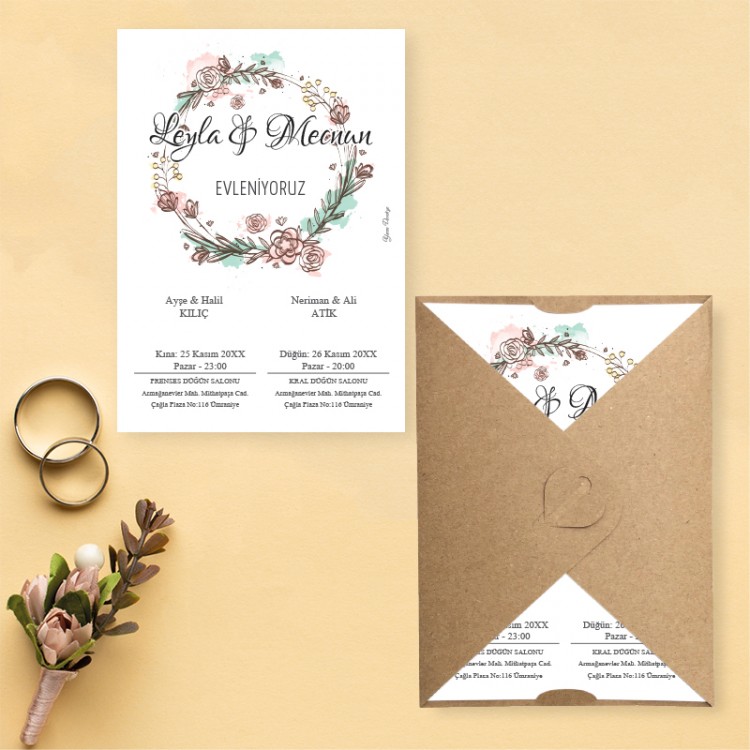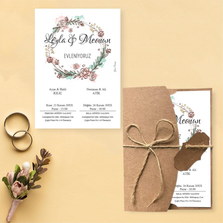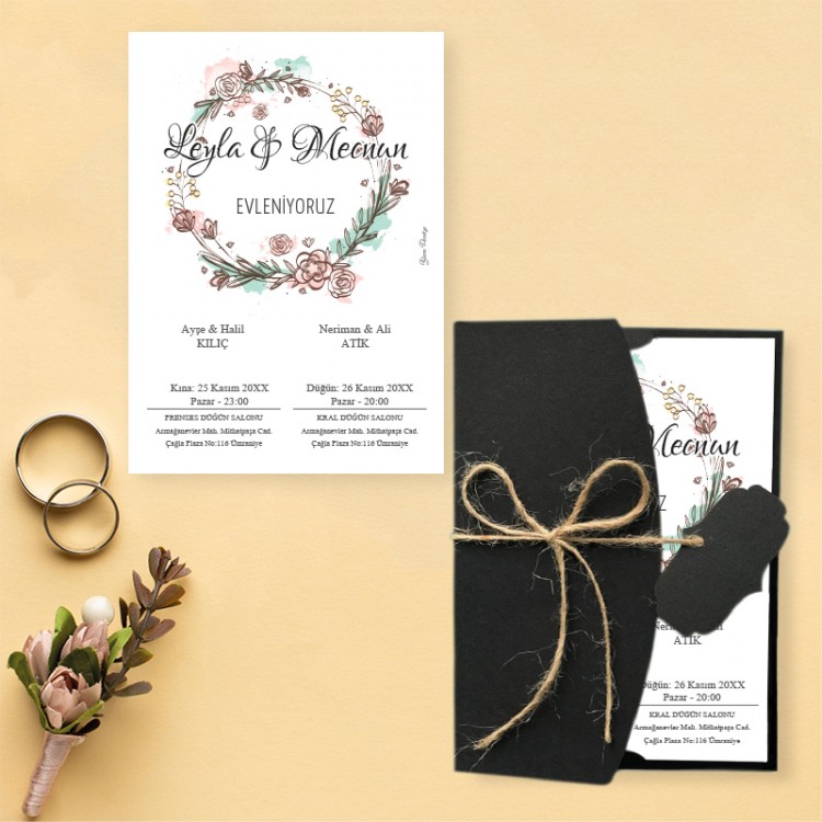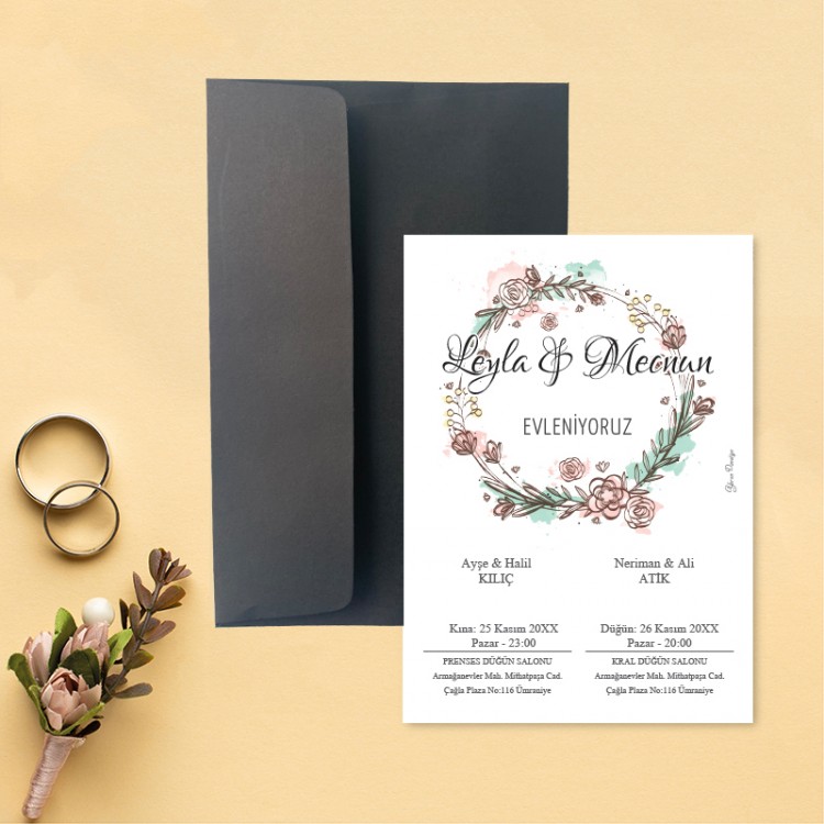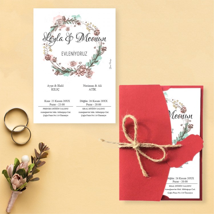 - Davetiye ölçüsü: 11,3 x 15,8 cm